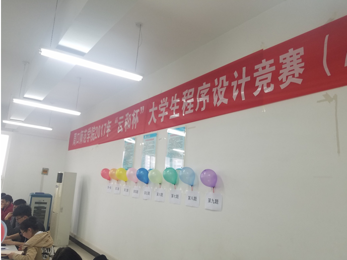 全部参赛人数426人,142组(每组3人),共有6个赛场/教室。而此次“云和杯”大学生程序设计竞赛按照国际ACM大赛所有标准(9题对应9种颜色的气球,写对一题发一枚气球)。